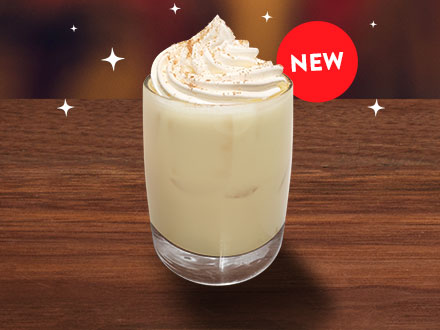 A classic, creamy eggnog with a grown-up twist! Includes 1oz Spiced Rum, finished with a dollop of whipped topping and a sprinkle of cinnamon sugar.
